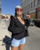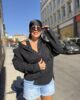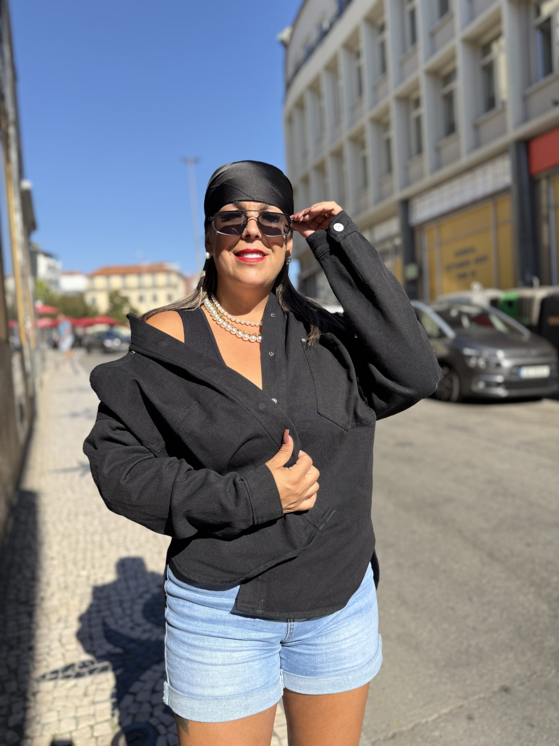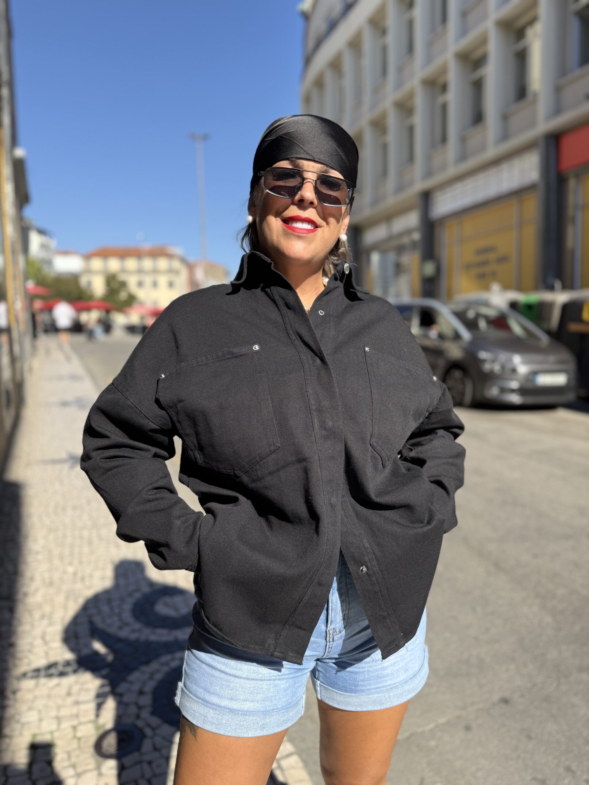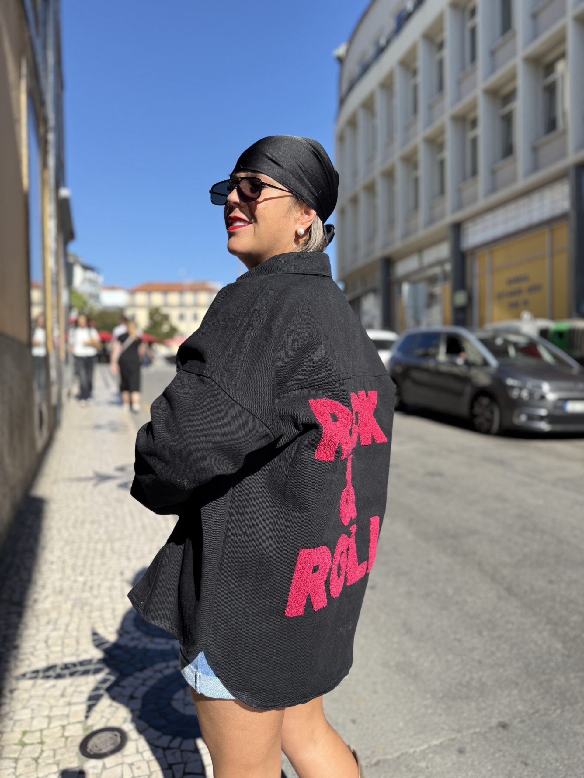 Camiseiro na cor preta com letras na cor rosa nas costas